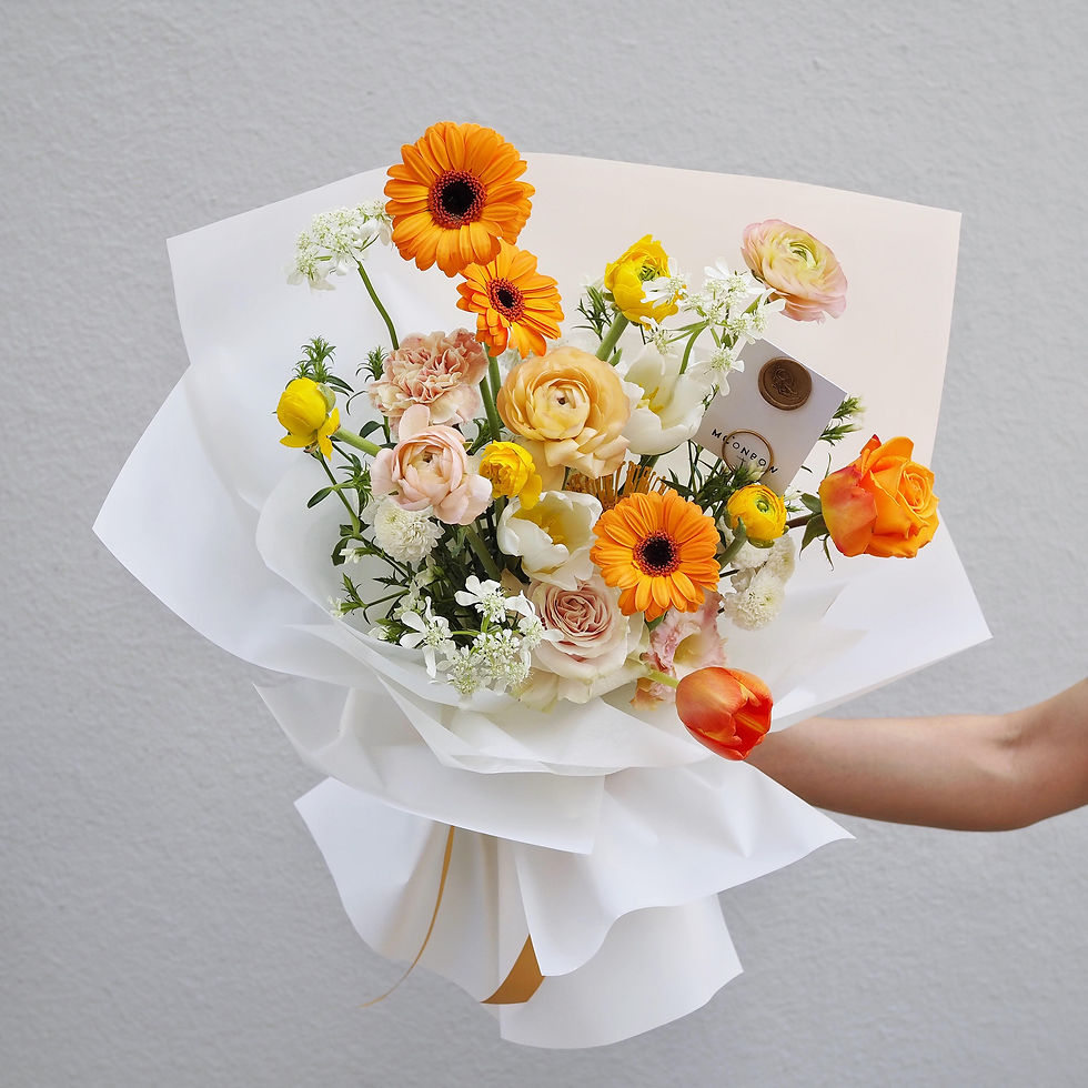 ร้านดอกไม้ Moonbow Flower มีบริการออกแบบช่อดอกไม้ตามความต้องการของคุณ ทั้งโทนสี สไตล์การจัดช่อ และสีกระดาษห่อ ทำให้เป็นของขวัญที่พิเศษสุดสำหรับคนที่คุณรัก อีกทั้งมีบริการออกแบบช่อดอกไม้เจ้าสาวให้มีดีไซน์พิเศษสุดเฉพาะคุณตามธีมสีของงาน และมีบริการ Workshop สอนจัดดอกไม้ให้เลือกเรียนสำหรับมือใหม่และผู้ที่ต้องการต่อยอดความรู้เพื่อเพิ่มทักษะทางสายงานด้านนี้